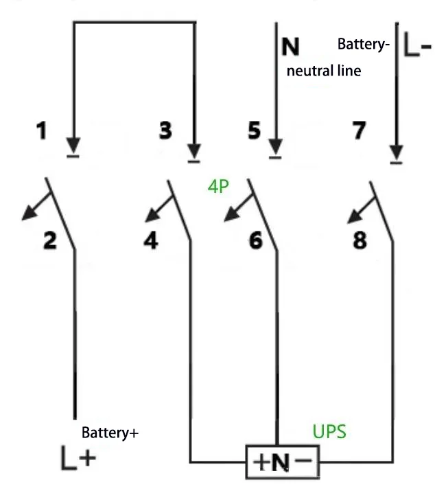 I konfigurasjonen av UPS-strømforsyningssystemer utfører likestrømsbrytere de doble funksjonene isolasjon og overstrømsbeskyttelse for batterikretser. Ulike typer UPS-strømforsyninger tilsvarer forskjellige batterispenninger og -strømmer, og krever derfor tilpasning av likestrømbrytere med forskjellige poltellinger. Denne artikkelen vil detaljere de ulike ledningsmetodene for 1P/2P/3P/4P DC-kretsbrytere som brukes i UPS-systemer.