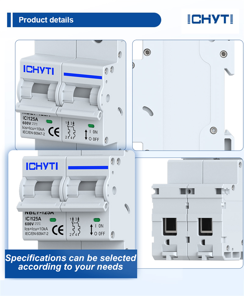 Som svar på applikasjonsbehovene til kunder innen lagring av solenergi og ny infrastruktur, har ICHYTI Manufacturer lansert en ny NBL7-125A Non-polarity 125A DC MCB. Denne likestrømsbryteren er egnet for kretsscenarier med en nominell driftsspenning på DC1000V/DC600V og et merkestrømområde på 80A til 125A. Den kan oppnå kortslutningsbeskyttelse og overbelastningsbeskyttelsesfunksjoner for DC-systemer, samtidig som den fungerer som kretsisolasjon og kontroll.